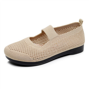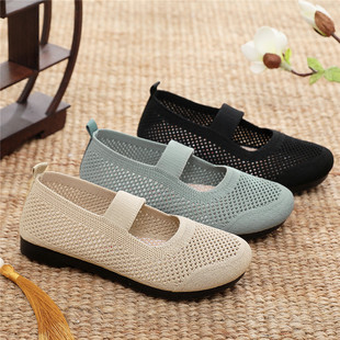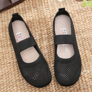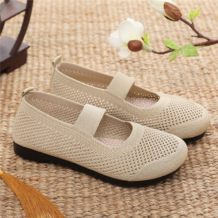新款 透气单鞋 老北京布鞋 镂空软底防滑豆豆鞋 浅口一脚蹬妈妈鞋 夏季