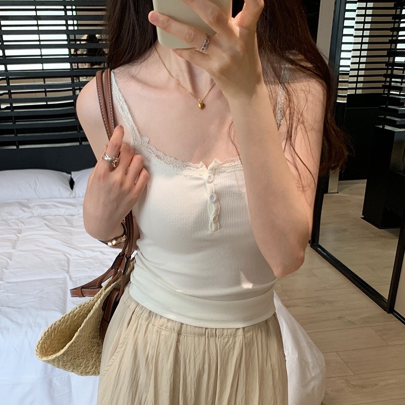 韩国东大门新款 气质女人味性感蕾丝边吊带背心女紧身内搭外穿上衣