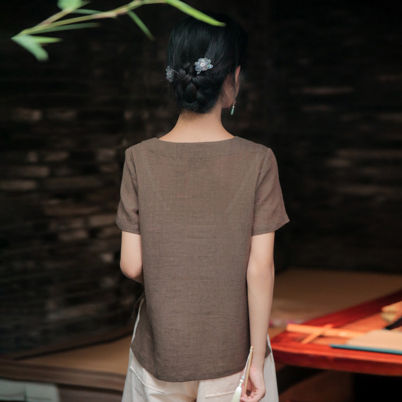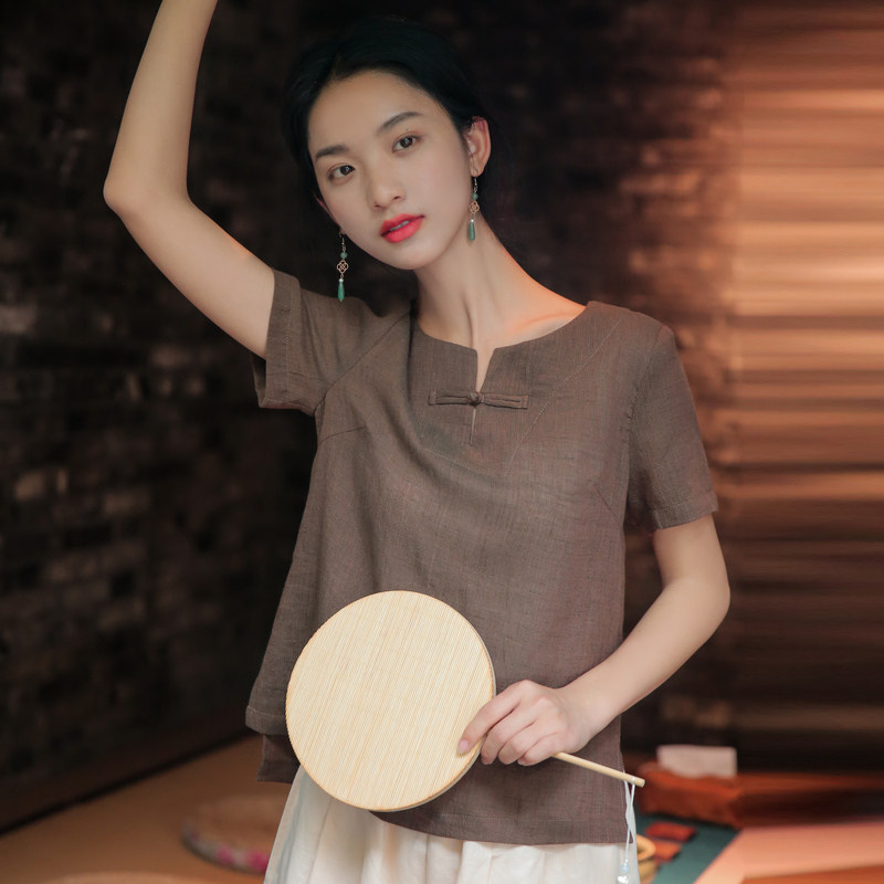 商品标签:亚麻唐装茶服夏季