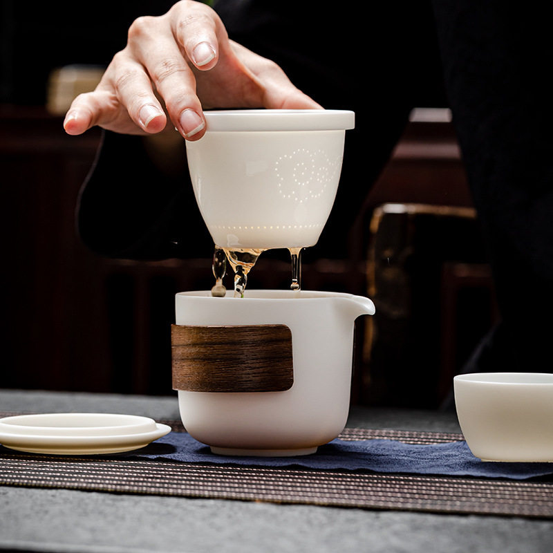 旅行茶具套装 羊脂玉素烧白瓷快客杯一壶两杯便携高档礼品logo定制