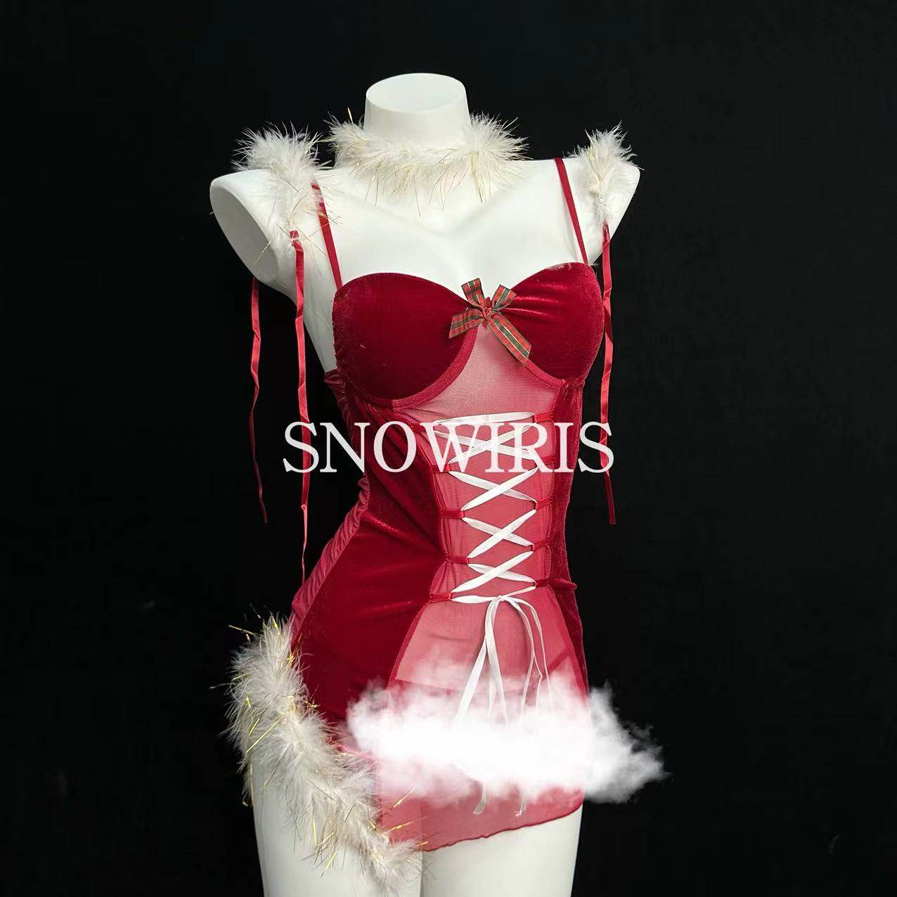 火烧岛 圣诞跨年夜性感纯欲内衣带胸垫睡裙套装