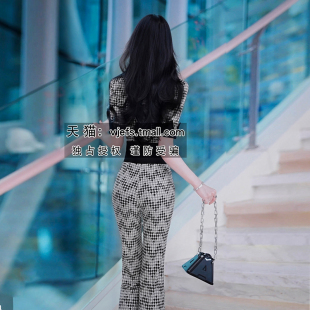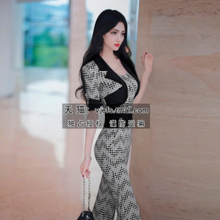 显瘦英伦风翻领连身裤 VJE波纹千鸟格印花短袖 修身 夏季 连体裤