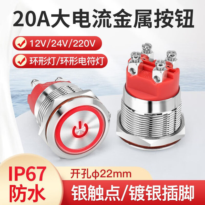 22mm大电流Ith20A自锁复位圆形金属按钮开关螺