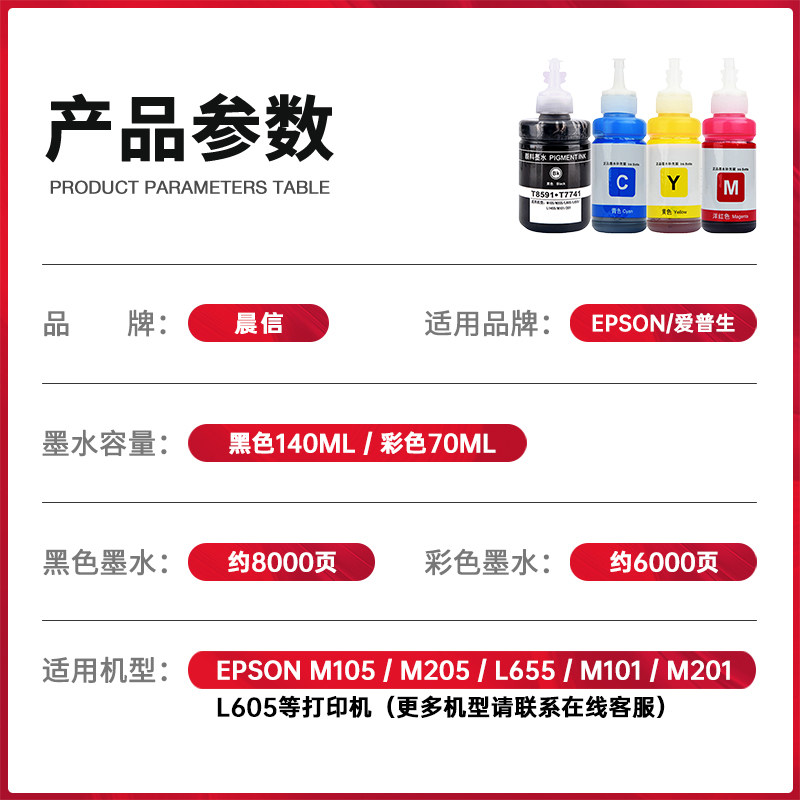 L3256 喷墨打印 L3115 墨水适用L3251 L3253 3116 L326X L3258 3119 爱普生Epson004原装 L1119 3118 L3108