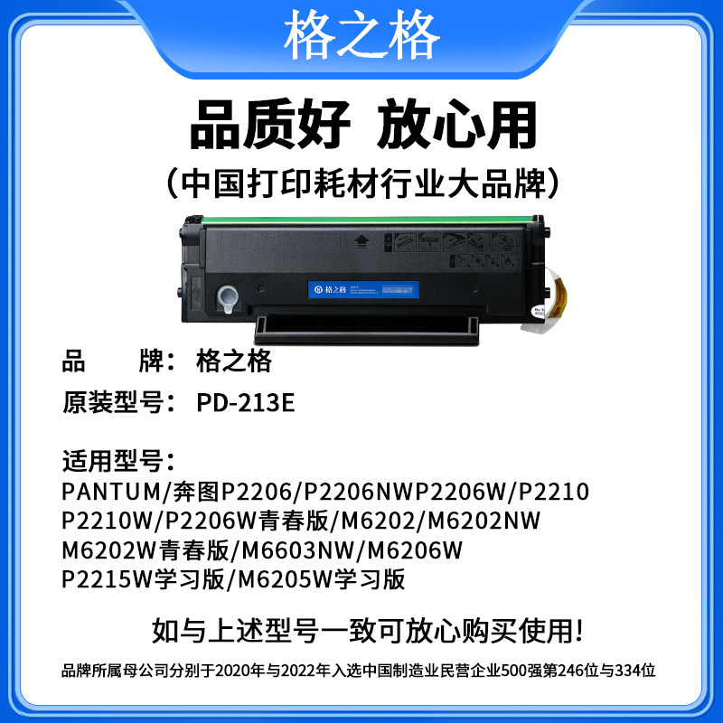 6202w青春版 格之格适用奔图M6202nw硒鼓PD213墨盒P2206w P2210W打印机墨粉PD213e M6603nw碳粉M6206w