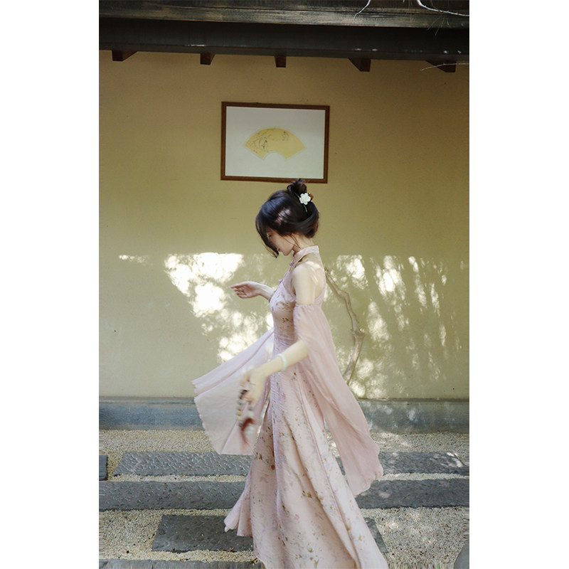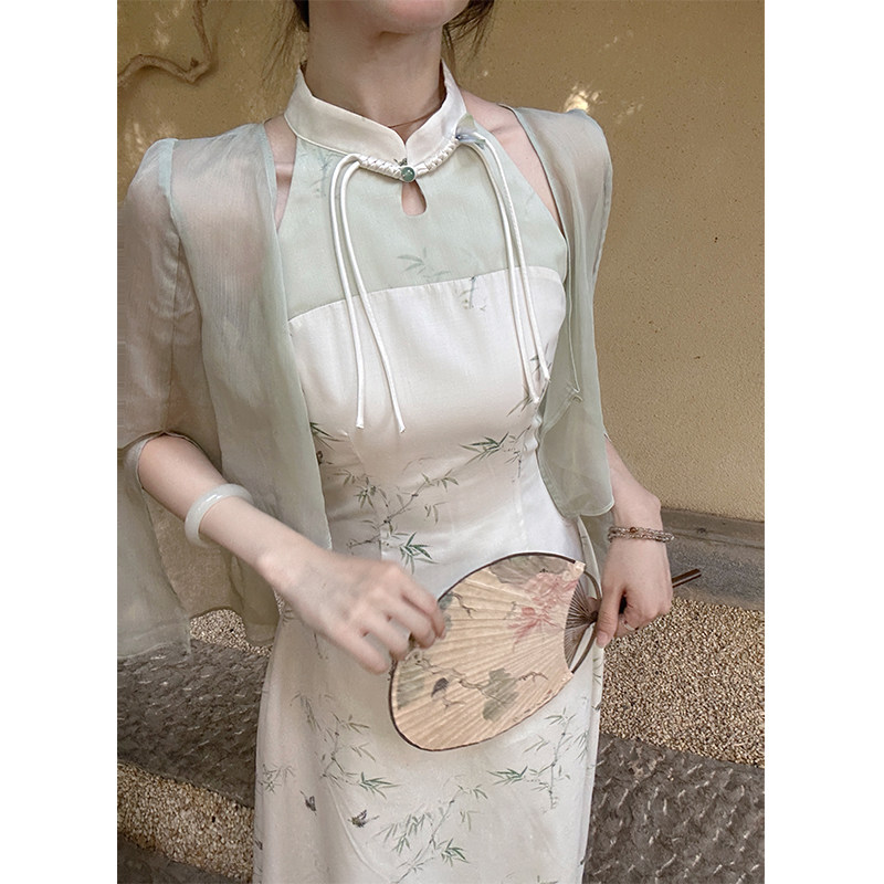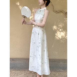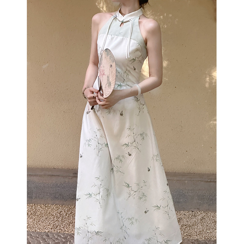 新中式 梦蝶小竹 国风挂脖连衣裙女旗袍长裙 现货4折 贰羊设计