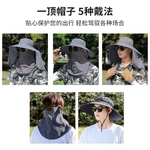 遮阳帽男士 防晒帽骑行登山钓鱼太阳帽户外遮全脸面纱帽披肩帽 夏季