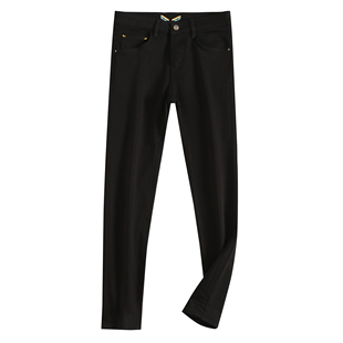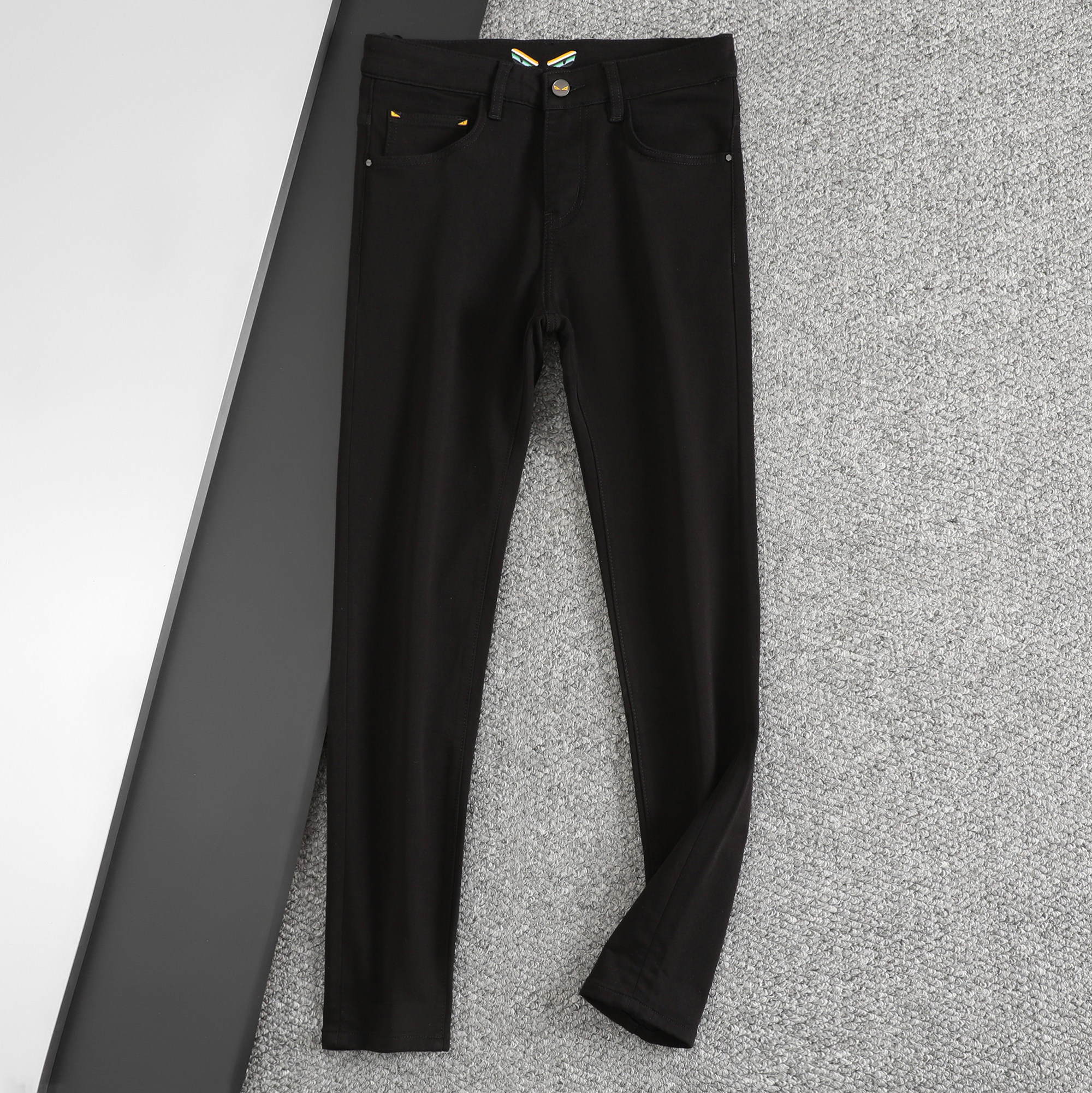 重工满天星加绒阔腿直筒裤 加厚新款 女2025冬季 黑色闪钻提花牛仔裤