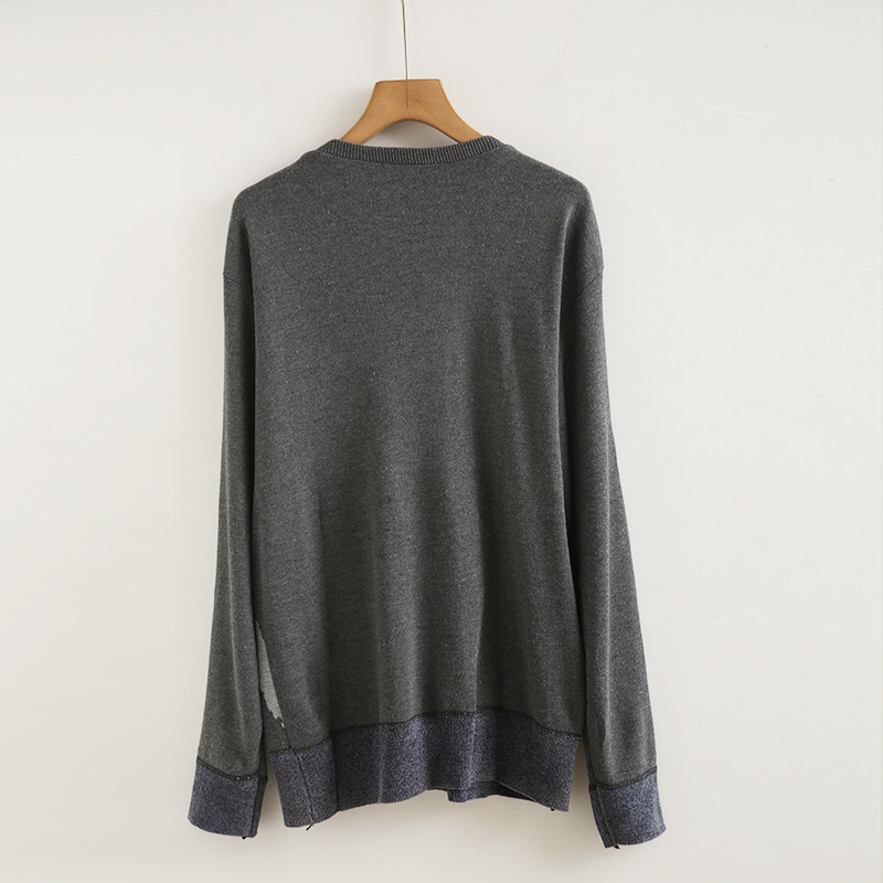 韩版 2025春秋款 宽松潮流休闲套头上衣外套 卫衣男士 斜波浪圆领长袖