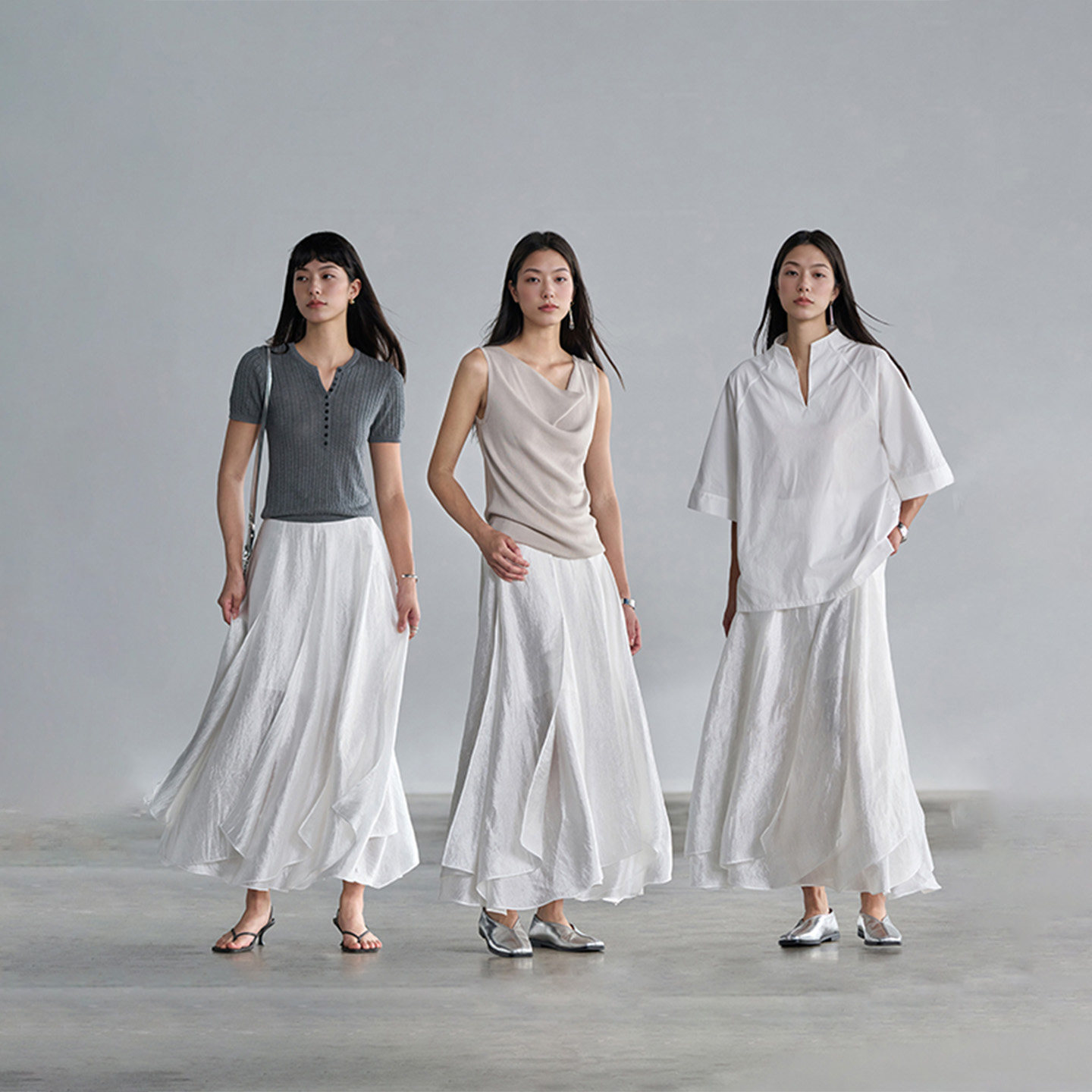 」醋酸花瓣半身裙 COMMON Pāra 禅 极简通勤月光A字长裙 VALUE「