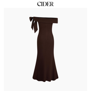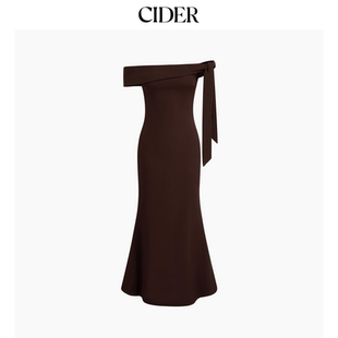 CIDERchic优雅风露肩蝴蝶结一字肩长款 收腰连衣裙114444307
