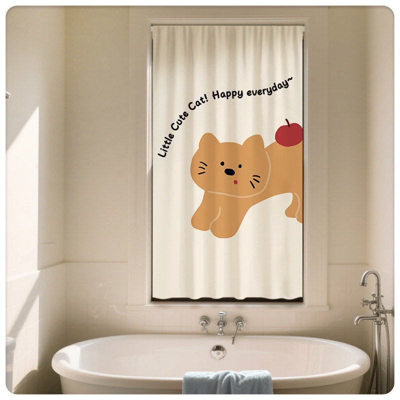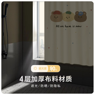 窗帘免打孔安装 全遮光飘窗卧室卫生间防水小窗帘 伸缩杆儿童房短款