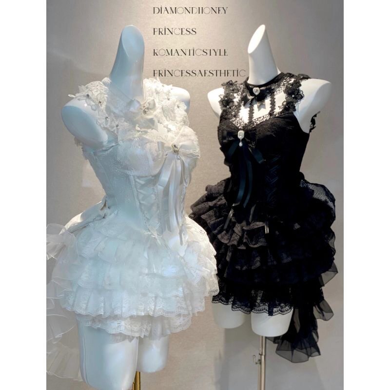 纯欲甜美Lolita裙洋装 重工设计感蕾丝花边吊带蝴蝶结蓬蓬连衣裙女