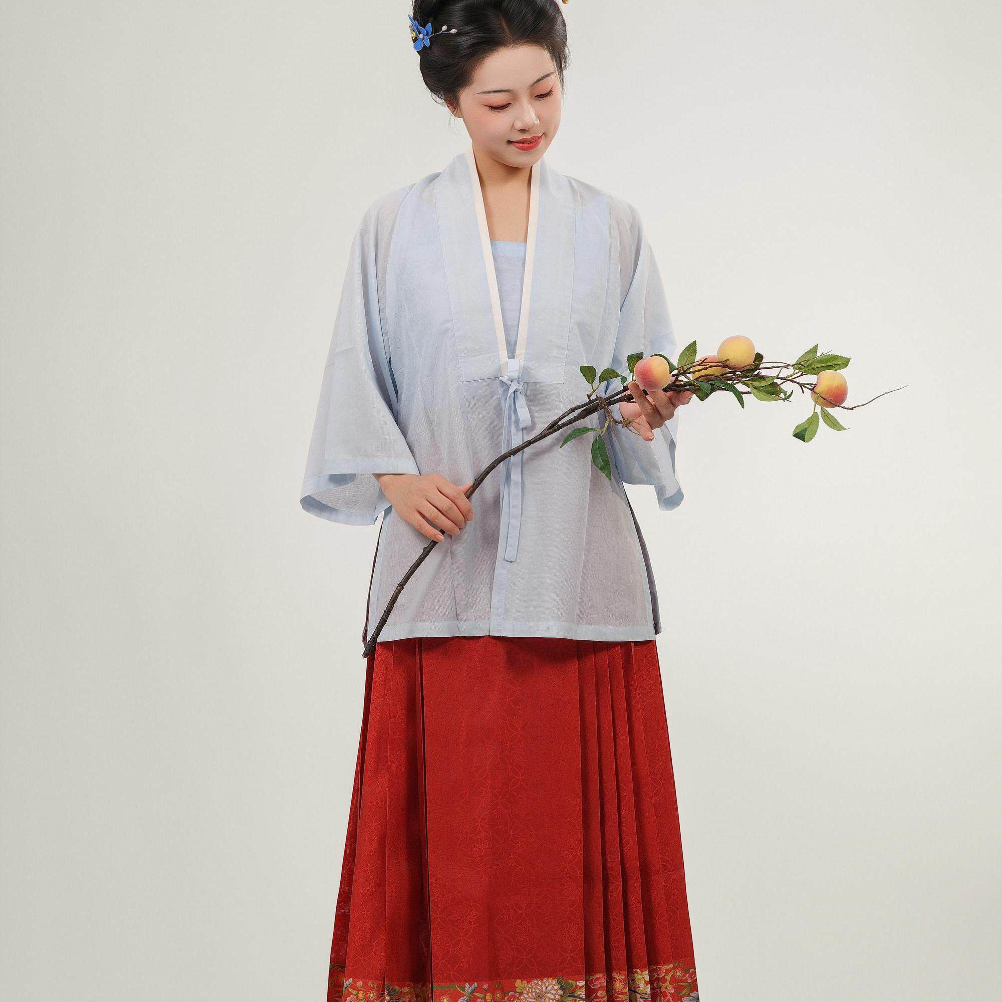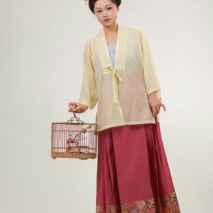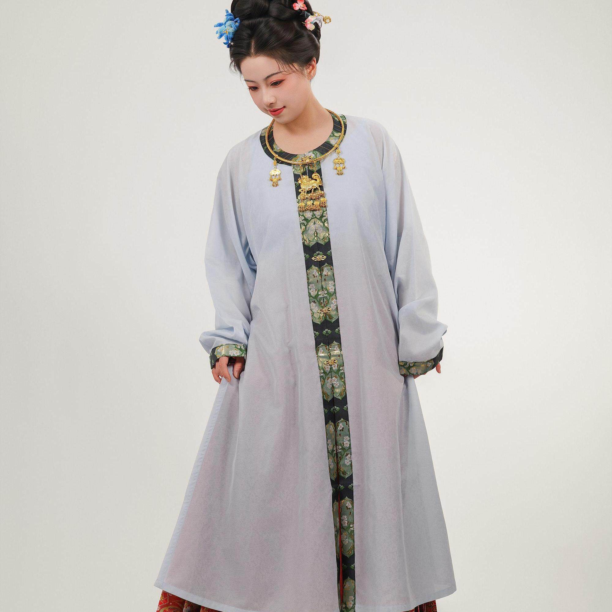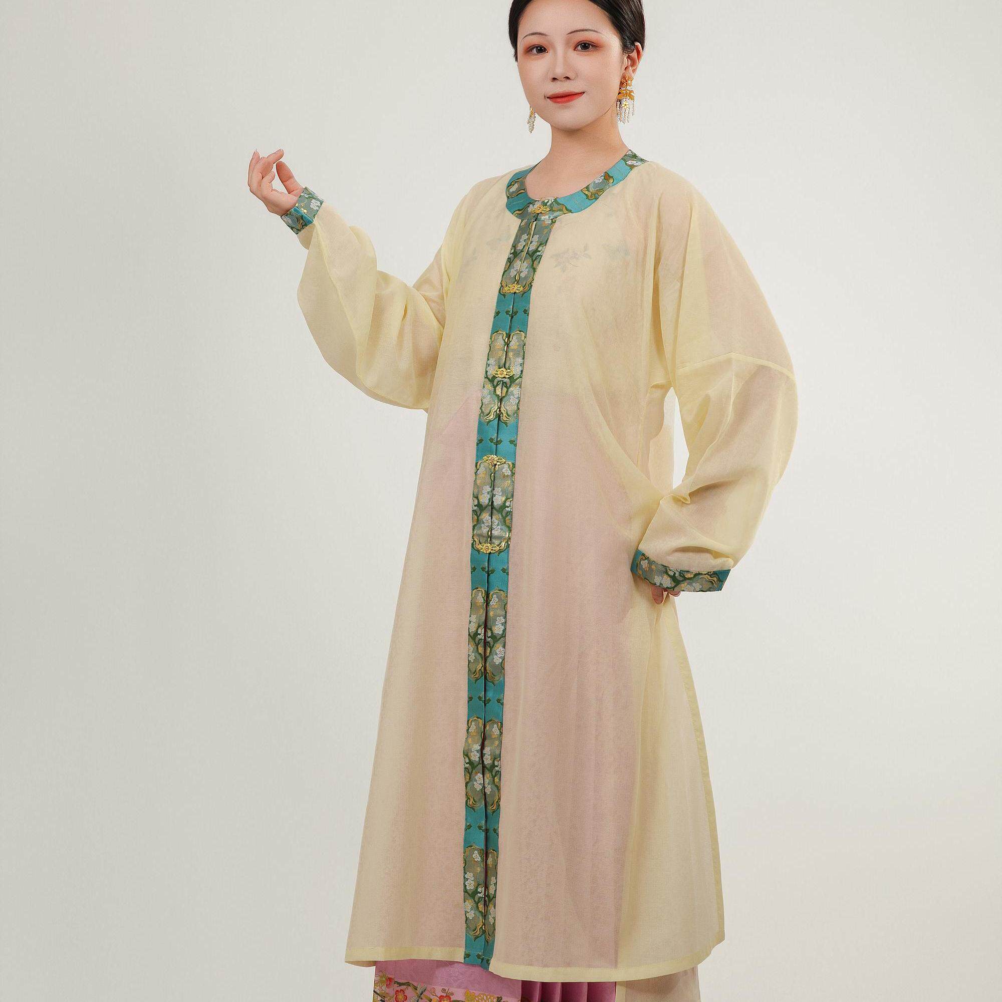 合领半袖 万历长衫 天丝混纺夏女汉服 秋姿明制圆领对襟弓袋袖 檀绾