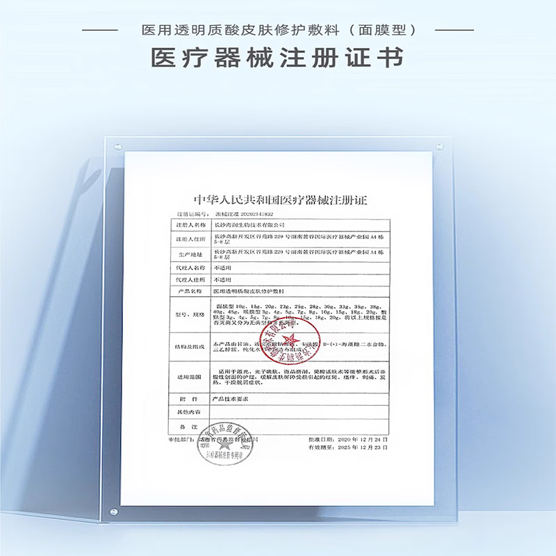UEH医用透明质酸皮肤修护敷料25g 5片面膜型屏障无菌医用级修复