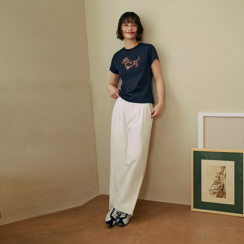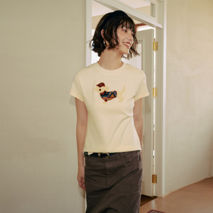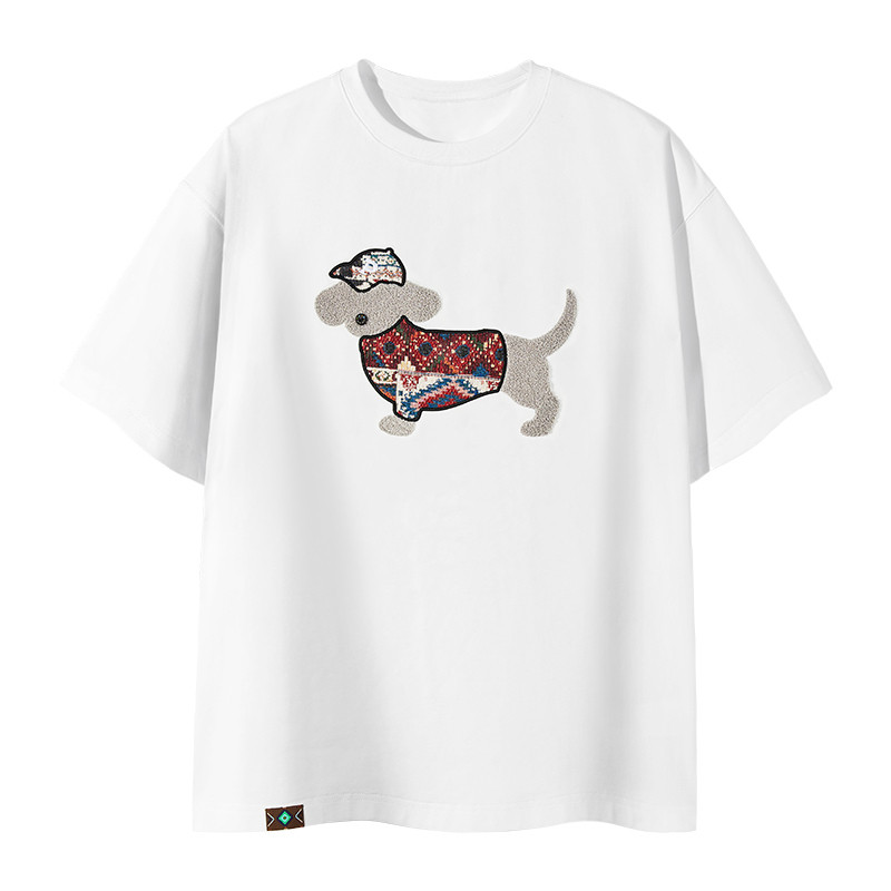 中空索罗娜可爱民族风刺绣小狗短袖 PSO 凉感 女装 T恤 Brand男装