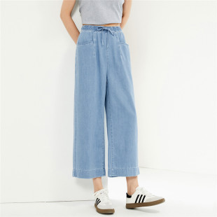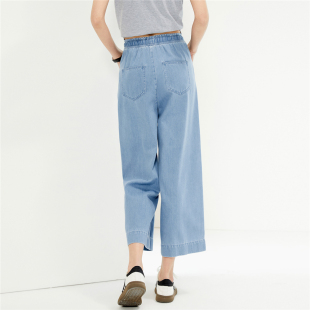 13424201 莱赛尔薄牛仔抽绳松紧腰阔腿九分裤 佐丹奴九分裤 女装