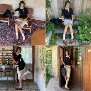 玛丽珍复古英伦风镂空豆豆鞋 厚底法式 女春季 natursunT字扣乐福鞋
