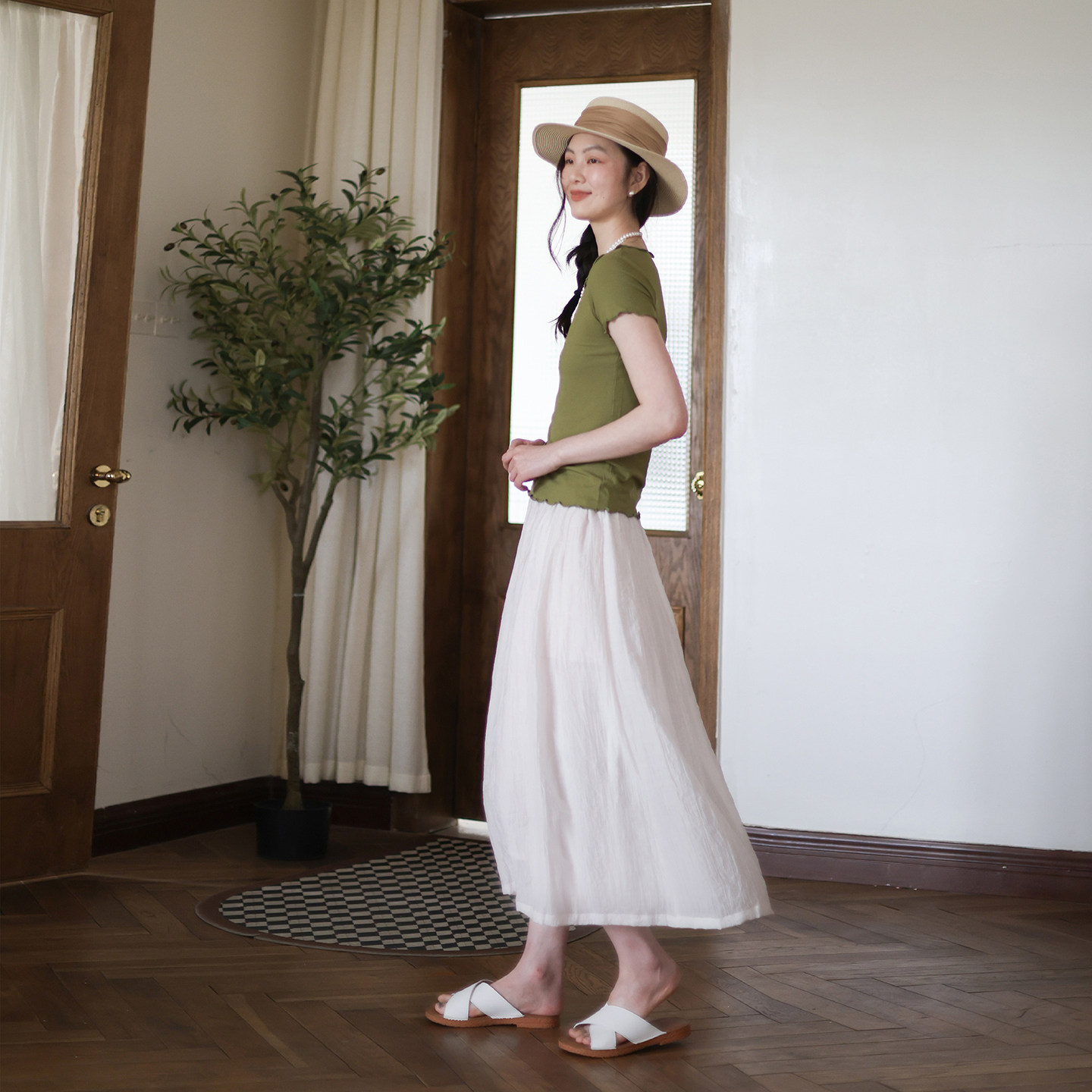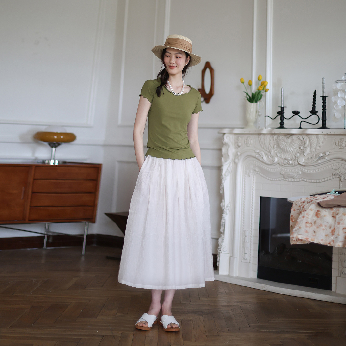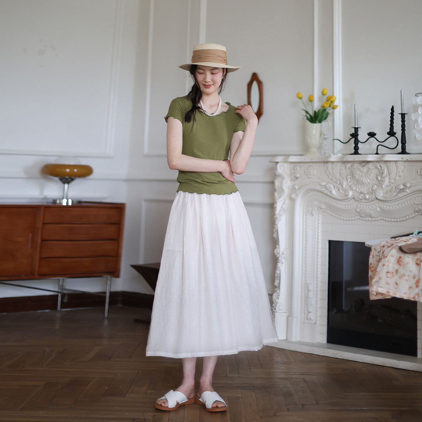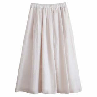 纯色百搭显瘦A字裙大摆裙白色半裙长裙 天丝棉半身裙 原创夏季 新款