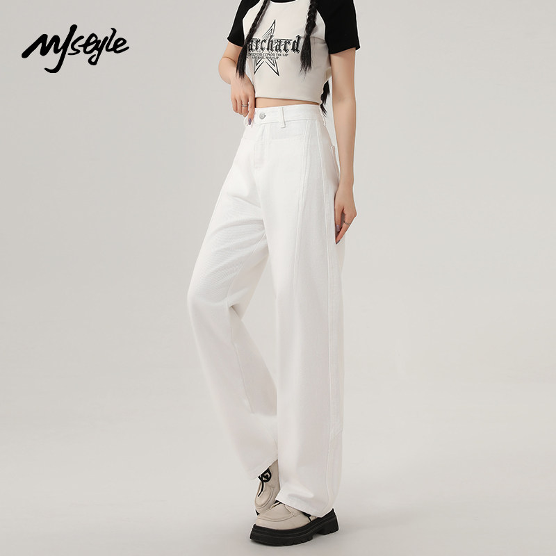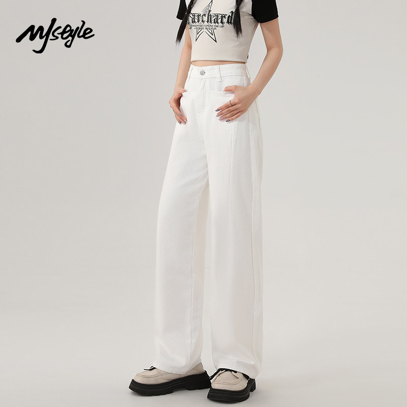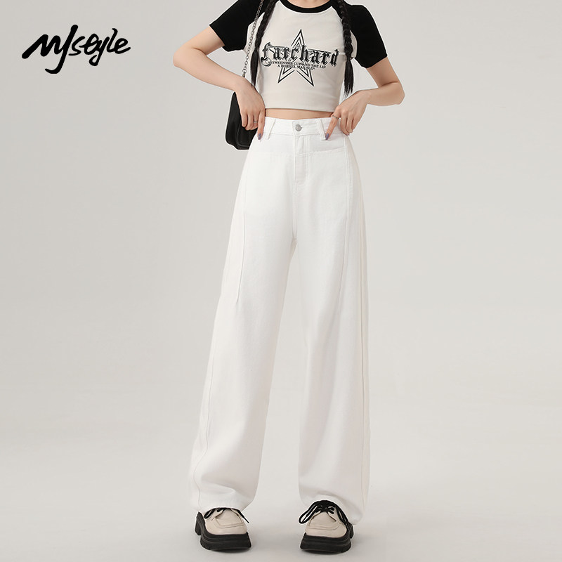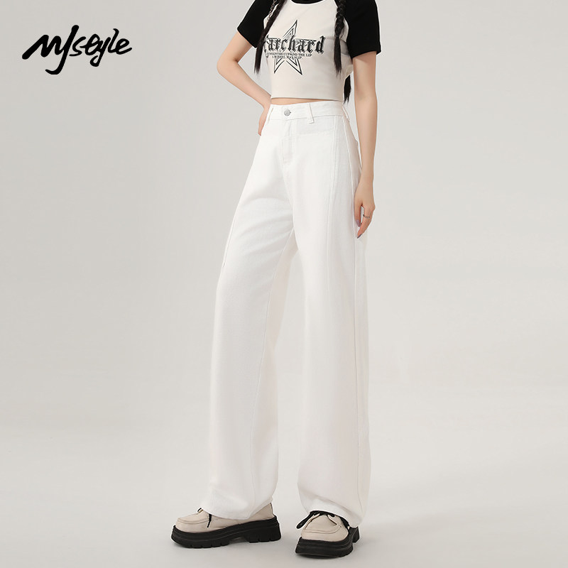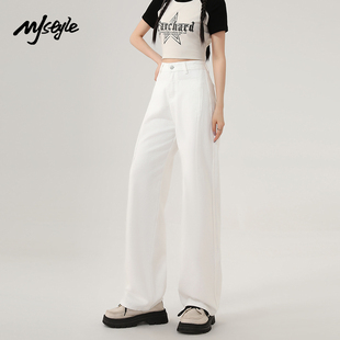 高腰小个子直筒拖地裤 女2025春夏新款 STYLE白色弯刀阔腿牛仔裤