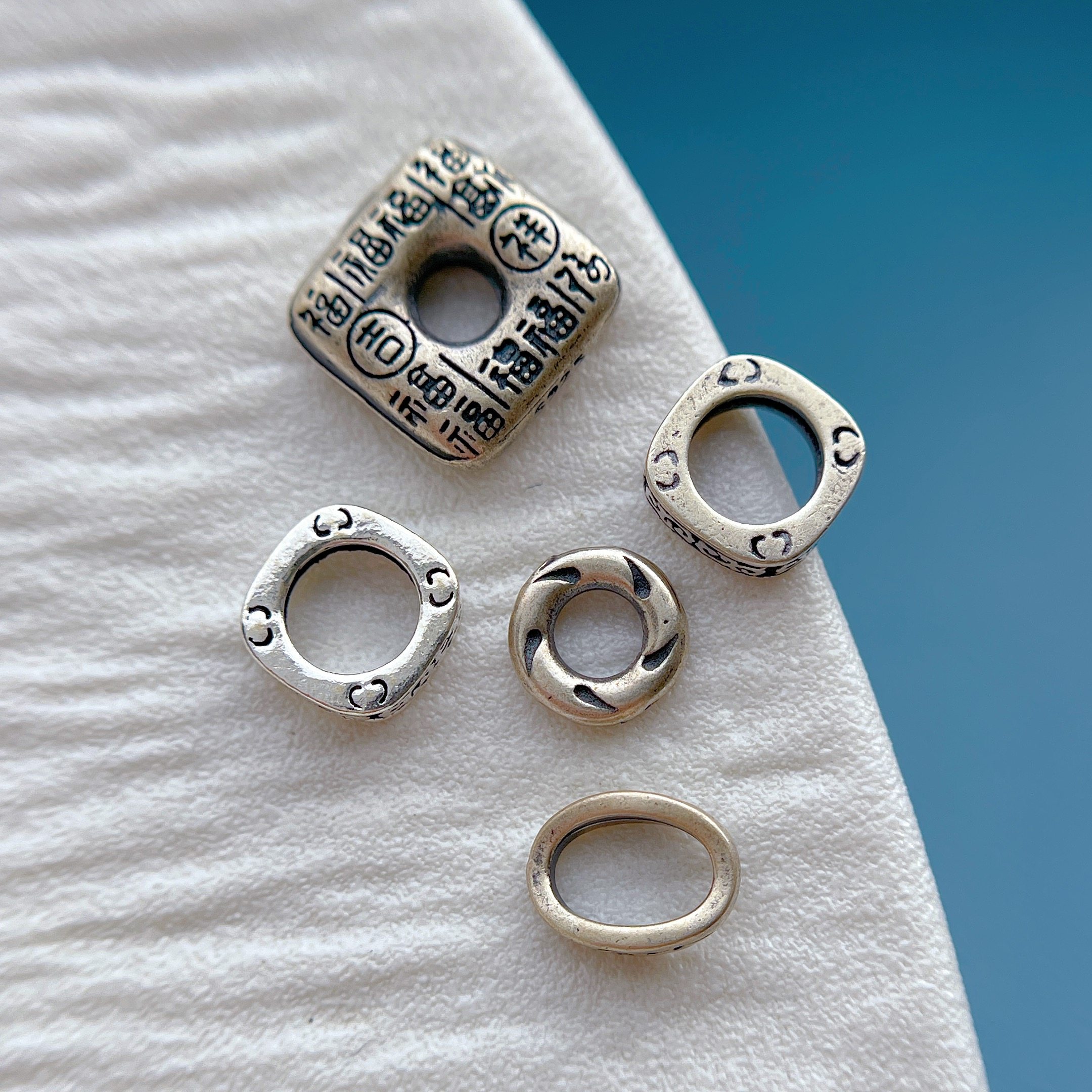 琢匠破煞山鬼隔珠三通文玩配饰国风原创diy银饰配件道系手串配珠