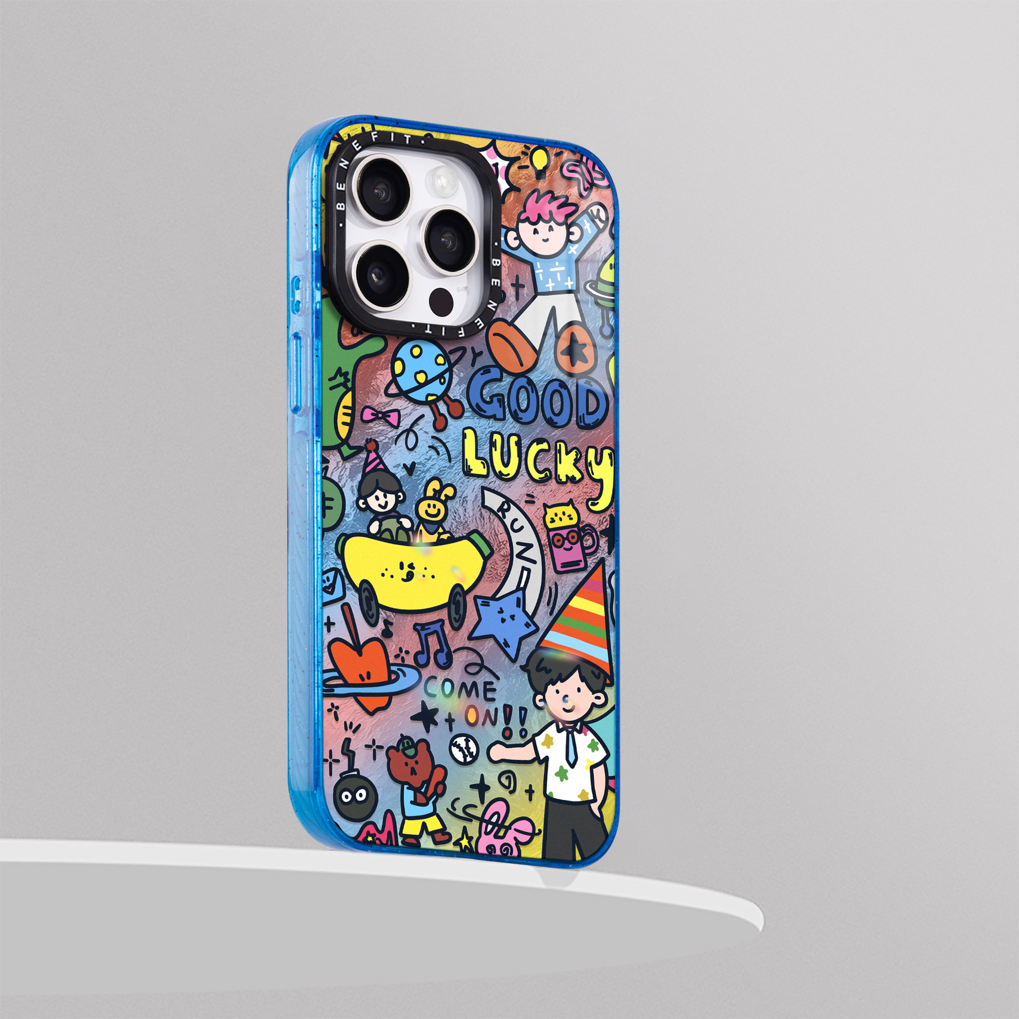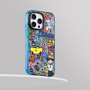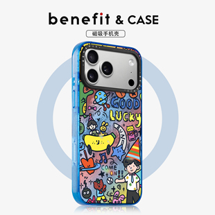 benefit个性 14套12冰川纹防摔彩色边框 涂鸦卡通小男孩17适用于iphone16promax苹果15PRO晶盾磁吸手机壳13新款