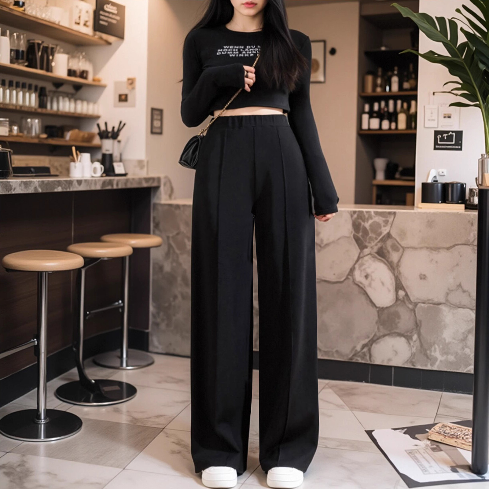 阔腿裤 大码 遮胯窄版 子梨形身材锦棉罗马加大加肥女装 胖mm巨显瘦裤