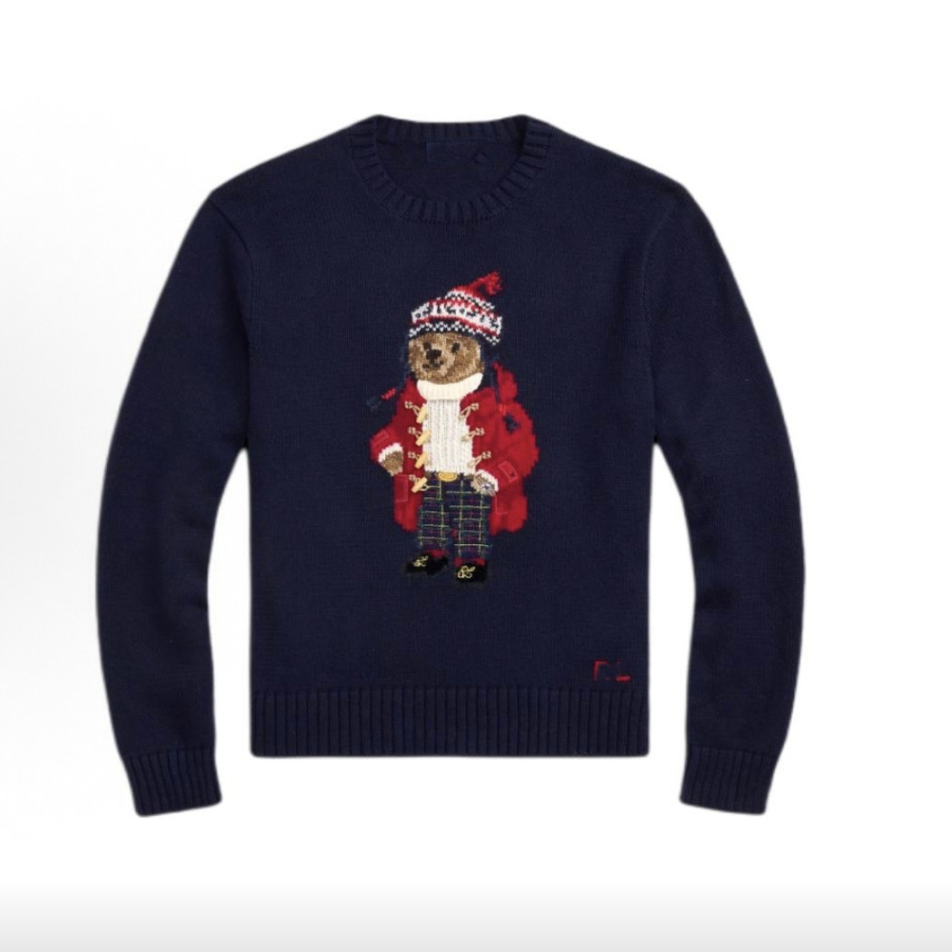 L纯棉美式 学院风小熊重工刺绣白色熊 毛衣新款 女装
