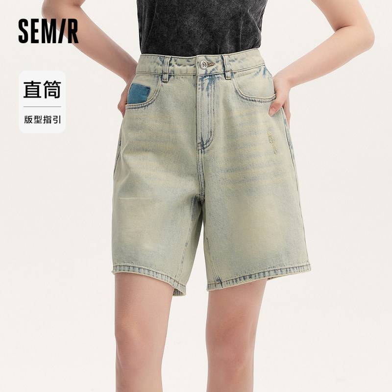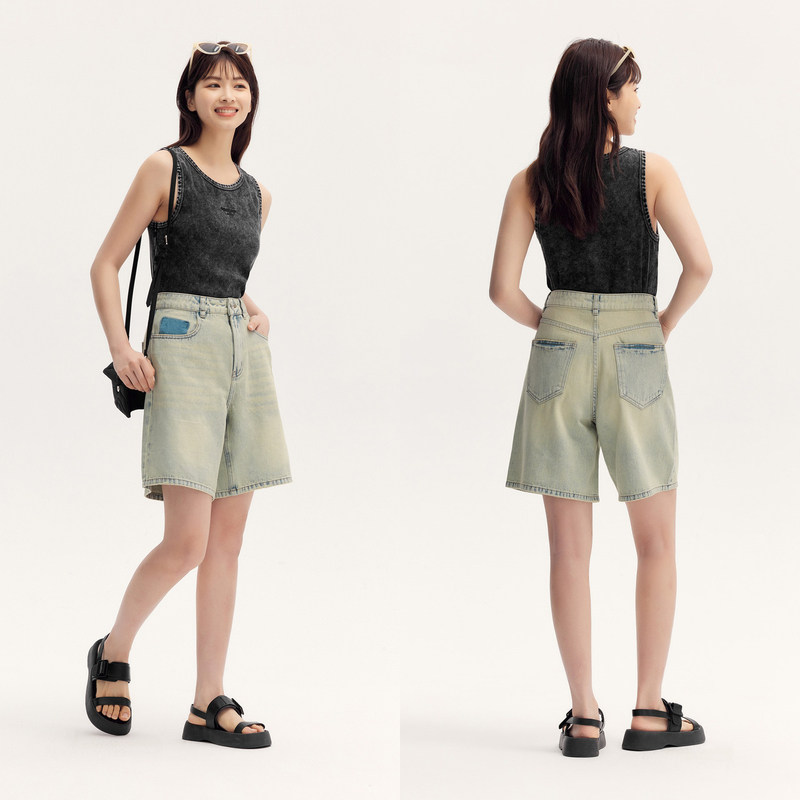 遮肉显瘦直筒裤 森马牛仔裤 夏季 街头2024新款 百搭 女潮酷百慕大短裤