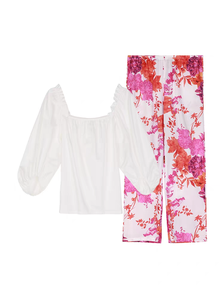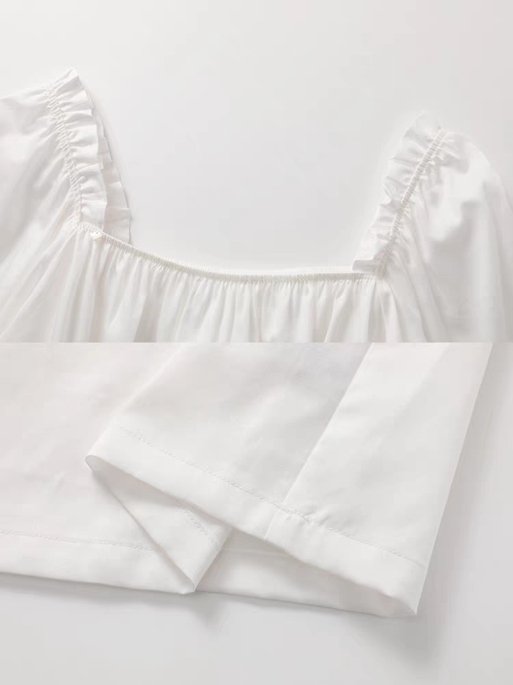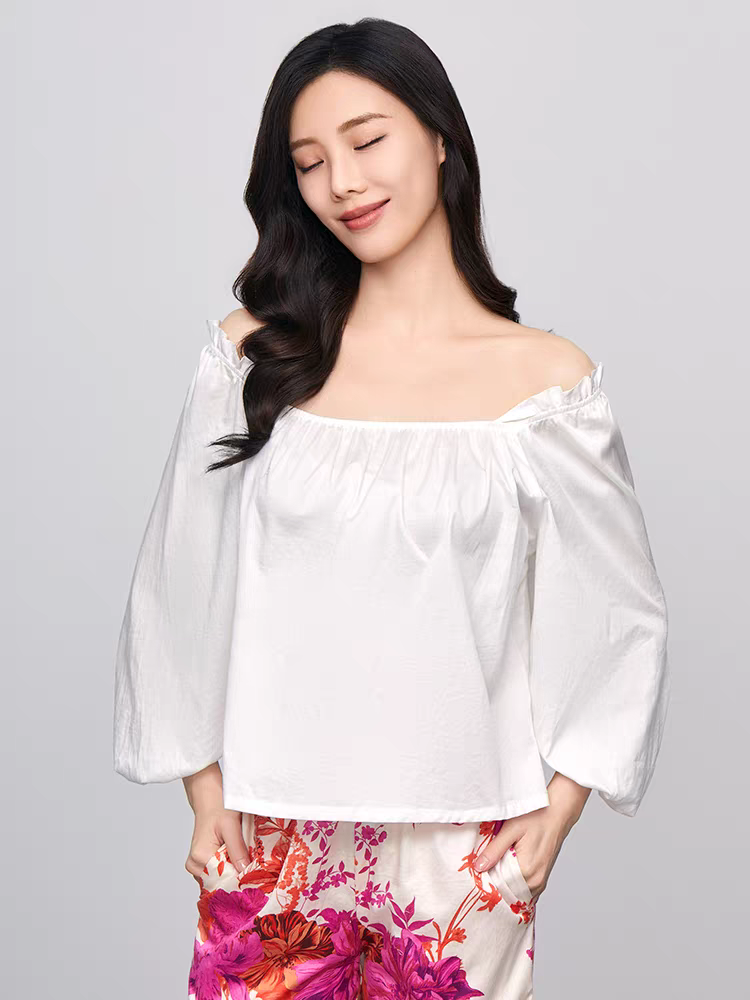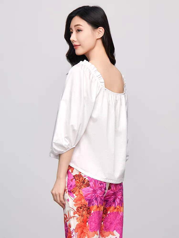 减龄休闲可外穿EL00726 衬衫 安莉芳纯棉家居服套装 女士白色泡泡袖
