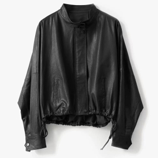 超薄全植鞣绵羊皮真皮皮衣外套女短款 宽松休闲抽绳皮夹克2026春秋