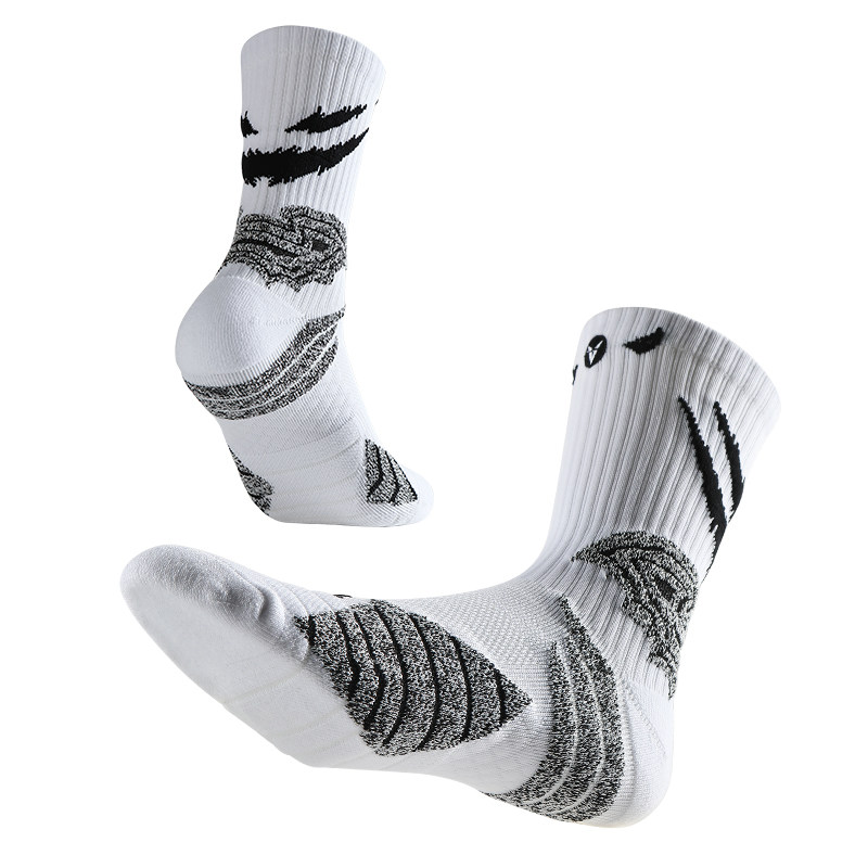 佐印男士 纯棉毛巾底运动袜中筒篮球羽毛球白色防臭短袜 袜子秋冬季