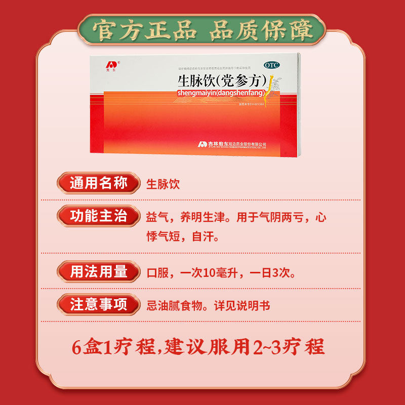 吉林敖东生脉饮党参口服液官方旗舰店益气养阴生津心悸气短自汗yp