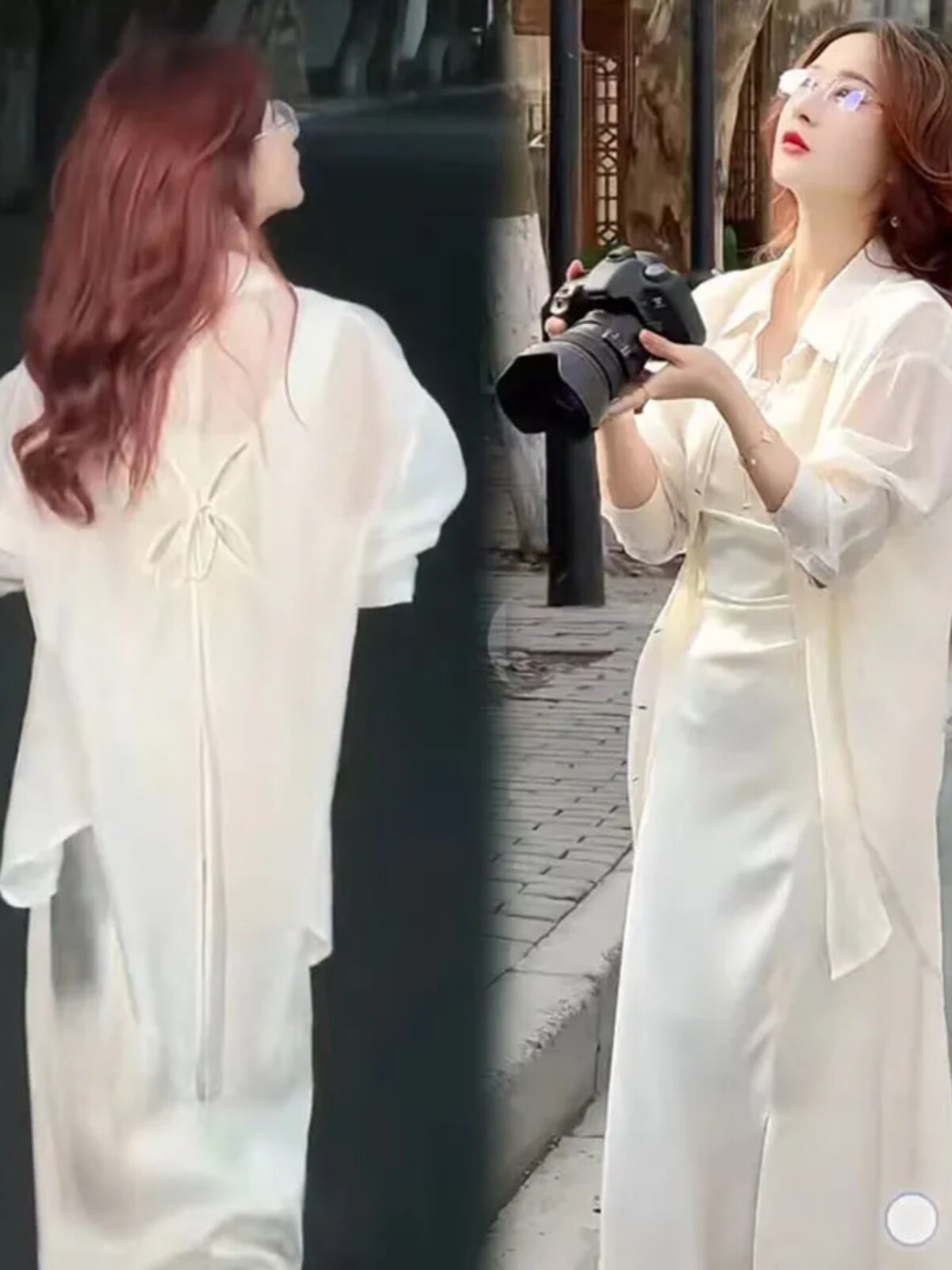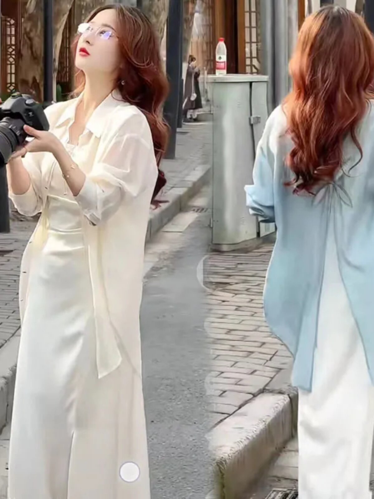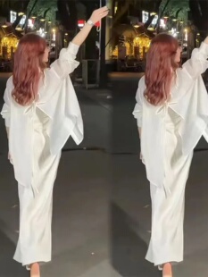 外套设计感小众空调衫 开衫 雪纺防晒上衣 女夏薄款 天丝后背开叉衬衫