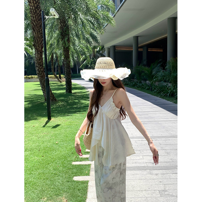 显瘦百搭设计感外穿上衣女 纯欲风无袖 Adan亮面不规则吊带夏季 韩版