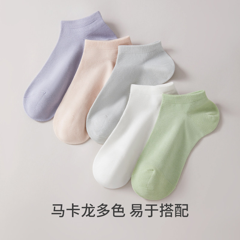 防滑不掉跟女士短筒 三枪袜子女短袜棉袜10A抗菌消臭春秋薄款 5双