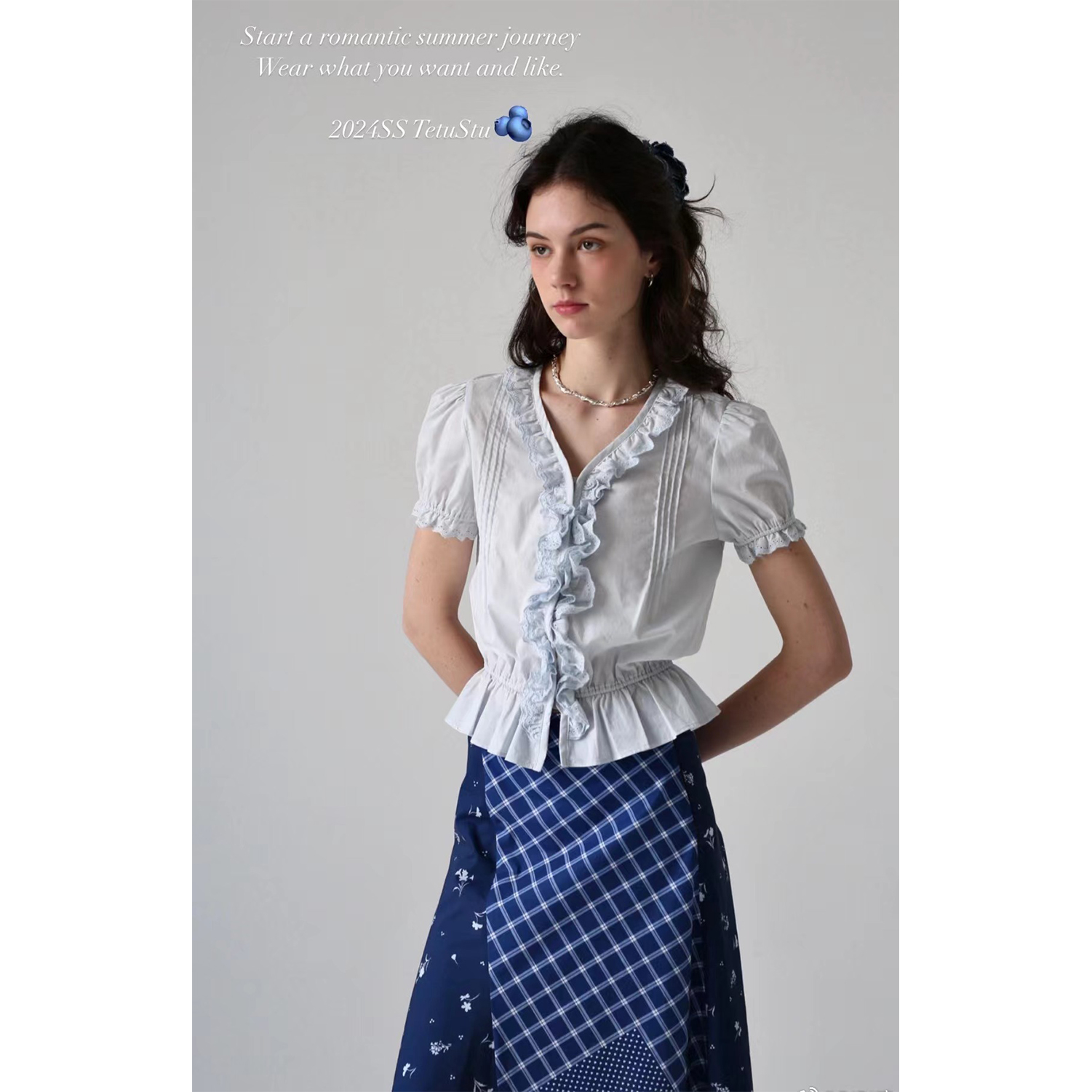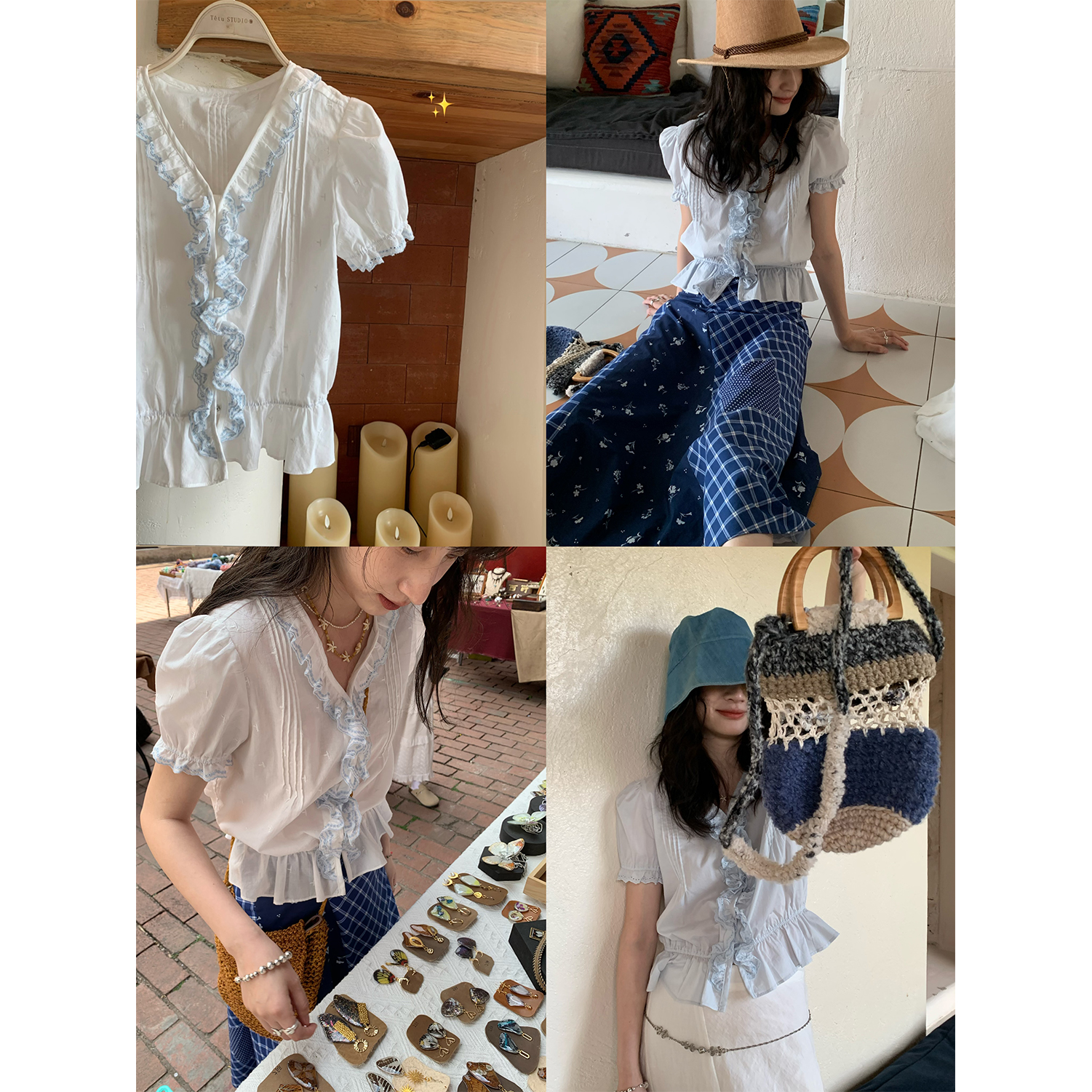 WP原创设计自带胸垫内搭lolita蕾丝衬衫 日落 搭配 塞纳河