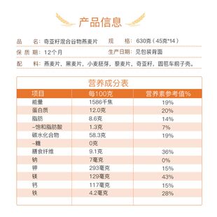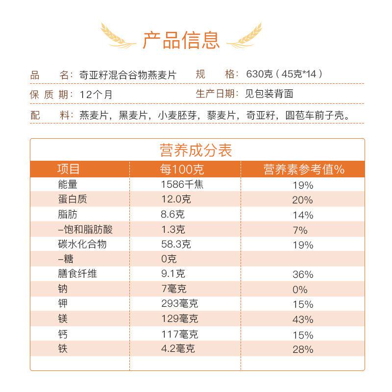 西麦奇亚籽混合谷物燕麦片630g小包装 热冲即食成人中老年营养冲饮