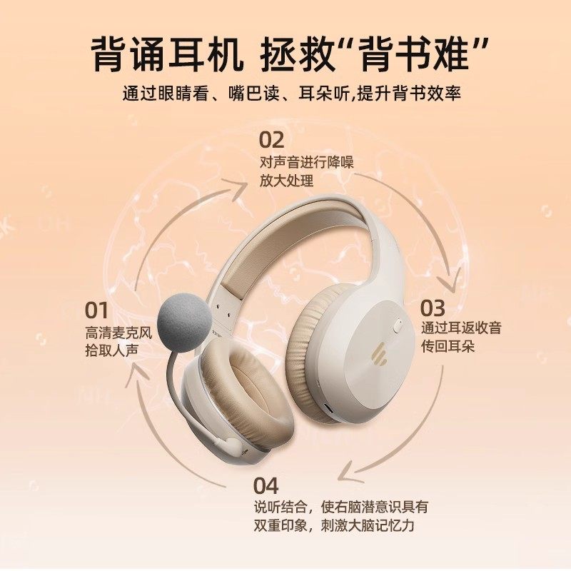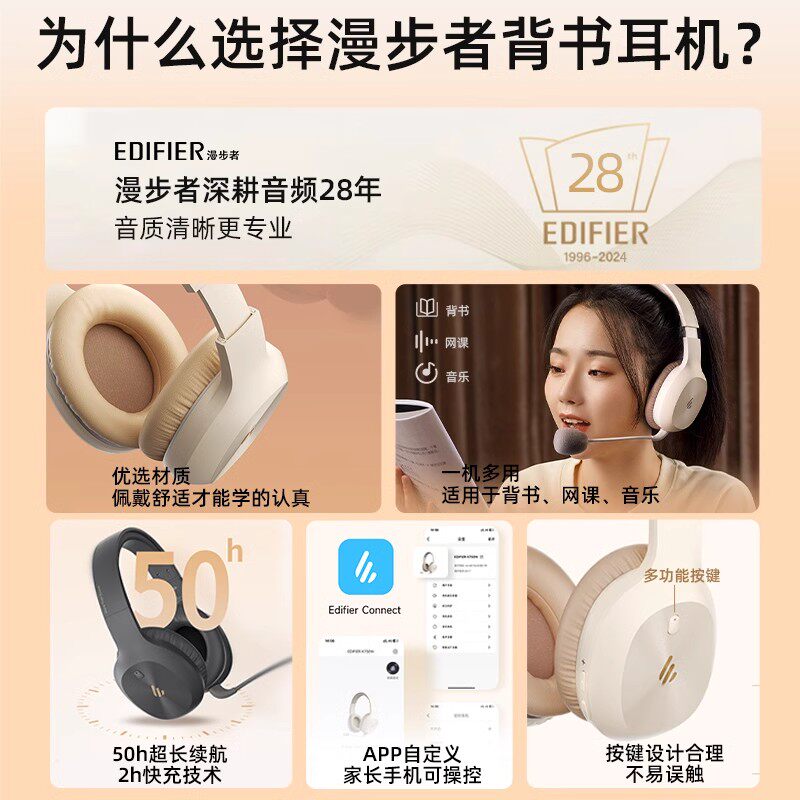 蓝牙无线耳返耳机背诵跟读沉浸式 K750W头戴式 学习 漫步者 Edifier