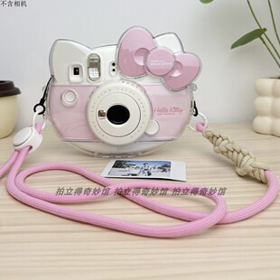 适用富士拍立得hello 自拍镜 Kitty相机透明保护壳套松松编织背带