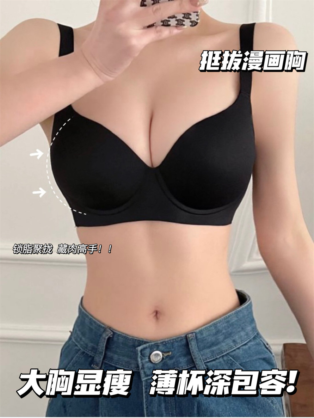 无痕文胸 夏缩胸聚拢收副乳防下垂大码 大容量 大胸显小内衣女薄款