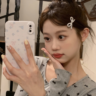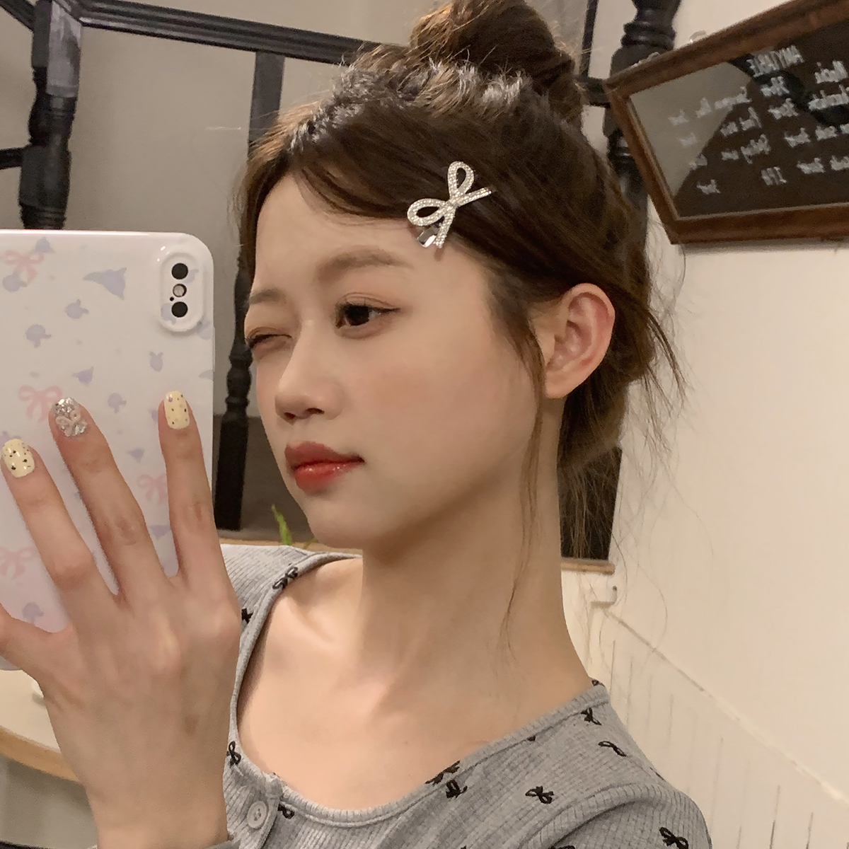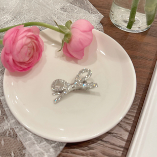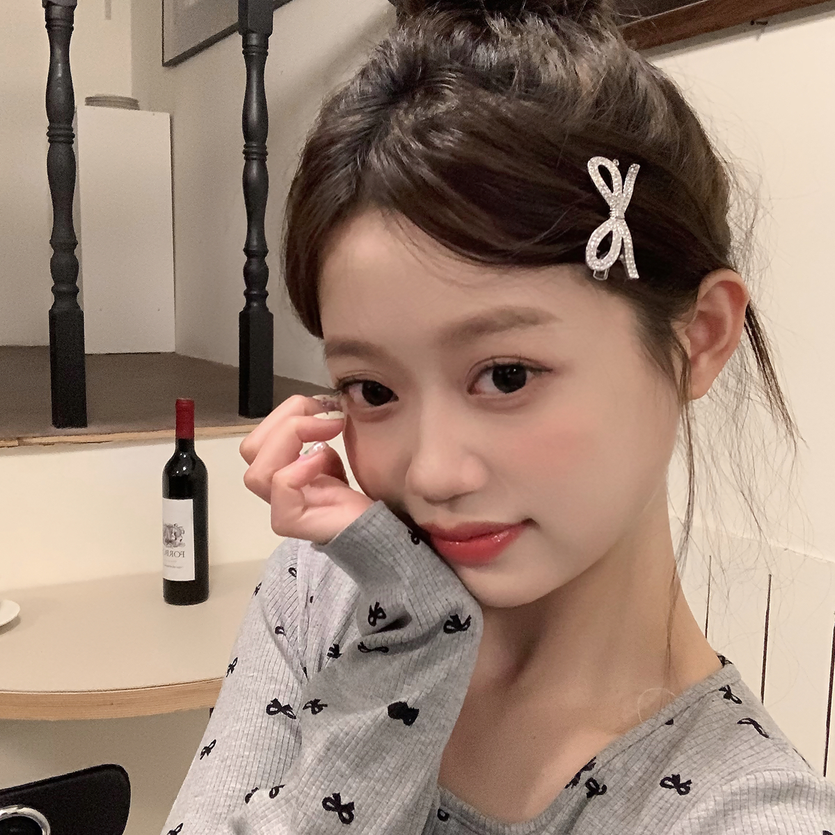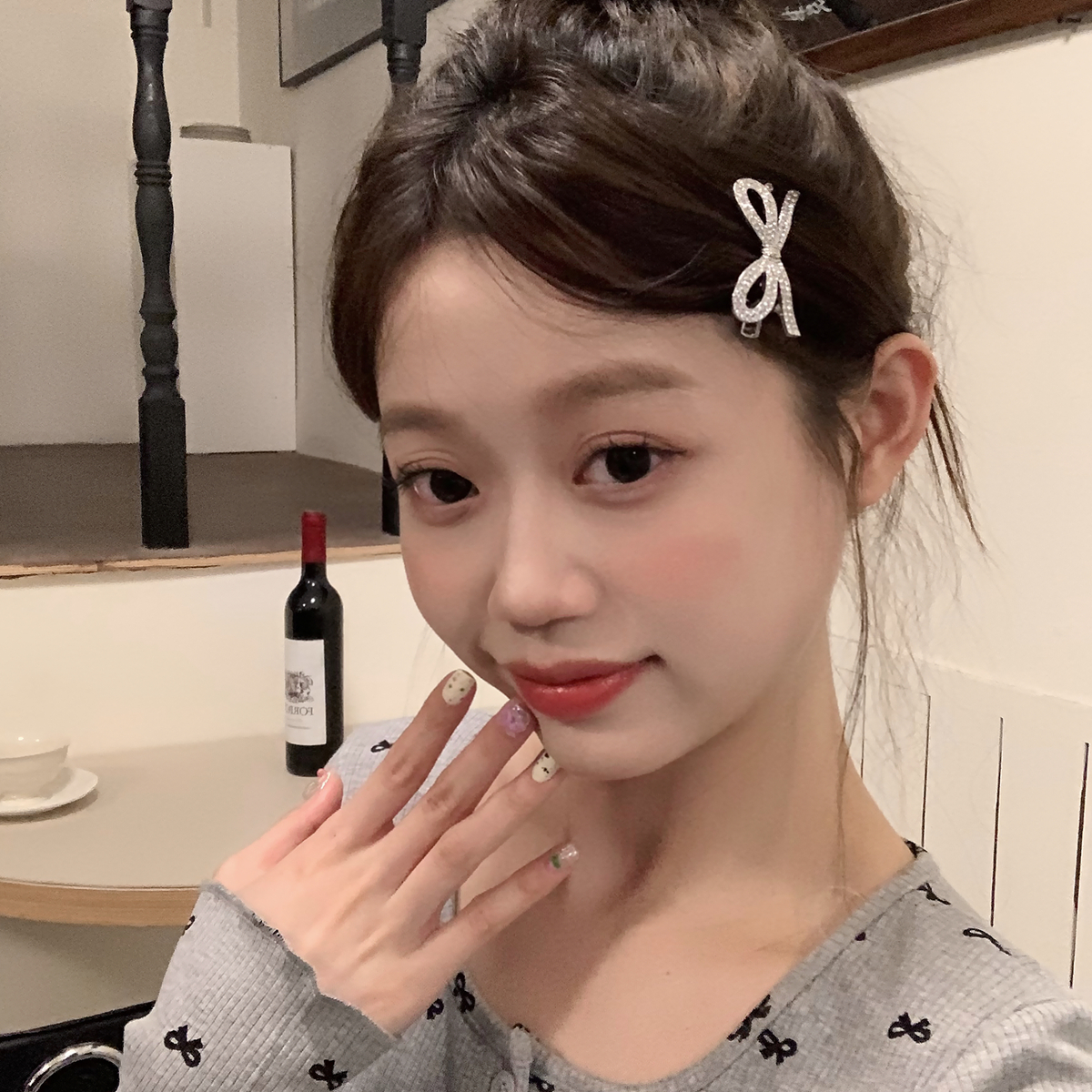 爆闪水钻蝴蝶结发夹侧边夹金属鸭嘴夹少女刘海发卡网红夹子头饰品