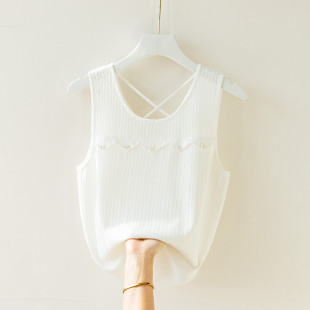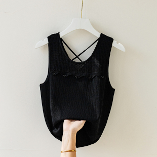女装 无袖 冰丝吊带背心女夏季 性感交叉美背打底衫 蕾丝上衣 新款 大码