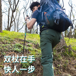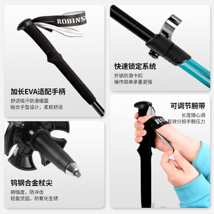 鲁滨逊旭日登山杖铝合金伸缩便携式 折叠碳素专业徒步户外手杖 女款