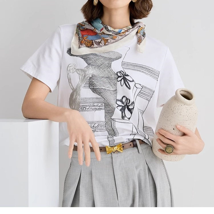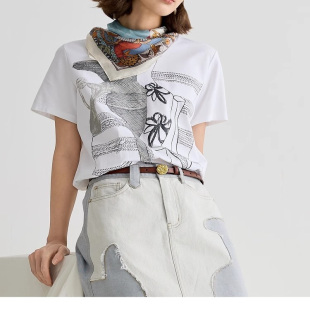 谜家现货速发商场同款 女2025夏休闲印花宽松H型中长上衣252MT0528
