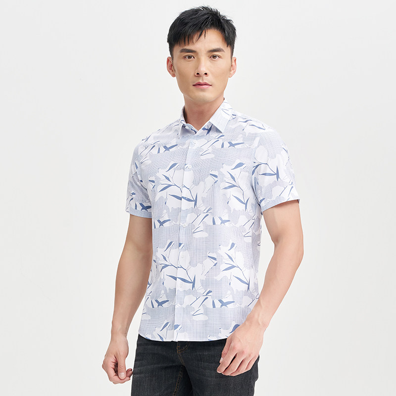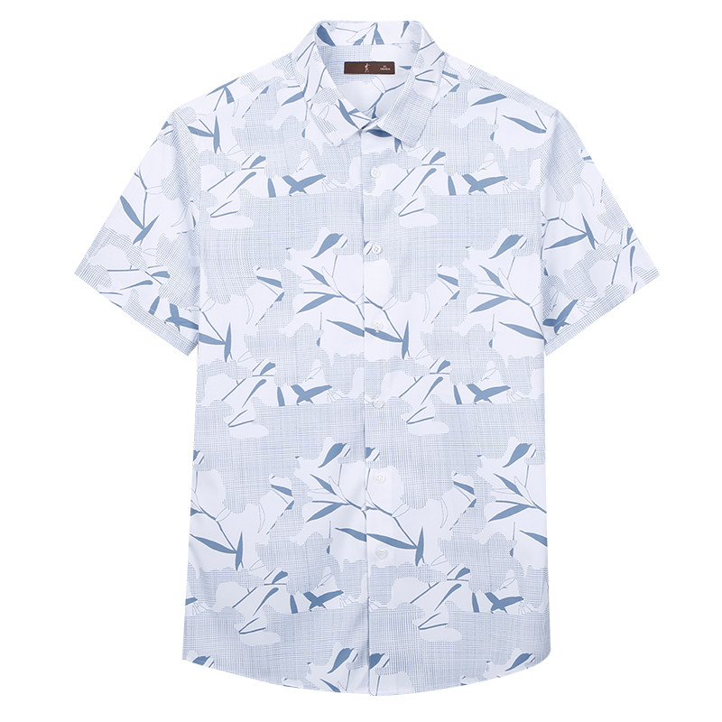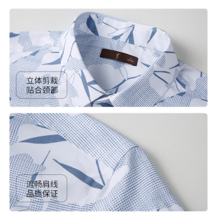2025夏季 男士 新款 竹叶印花薄款 中年衬衣 才子休闲短袖 透气修身 衬衫
