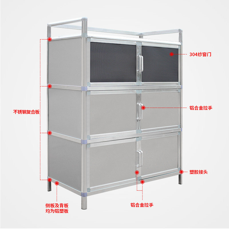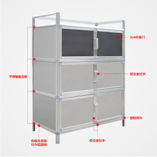 碗柜304不锈钢纱窗经济型厨房柜子灶台家用餐边柜铝合金储物柜子