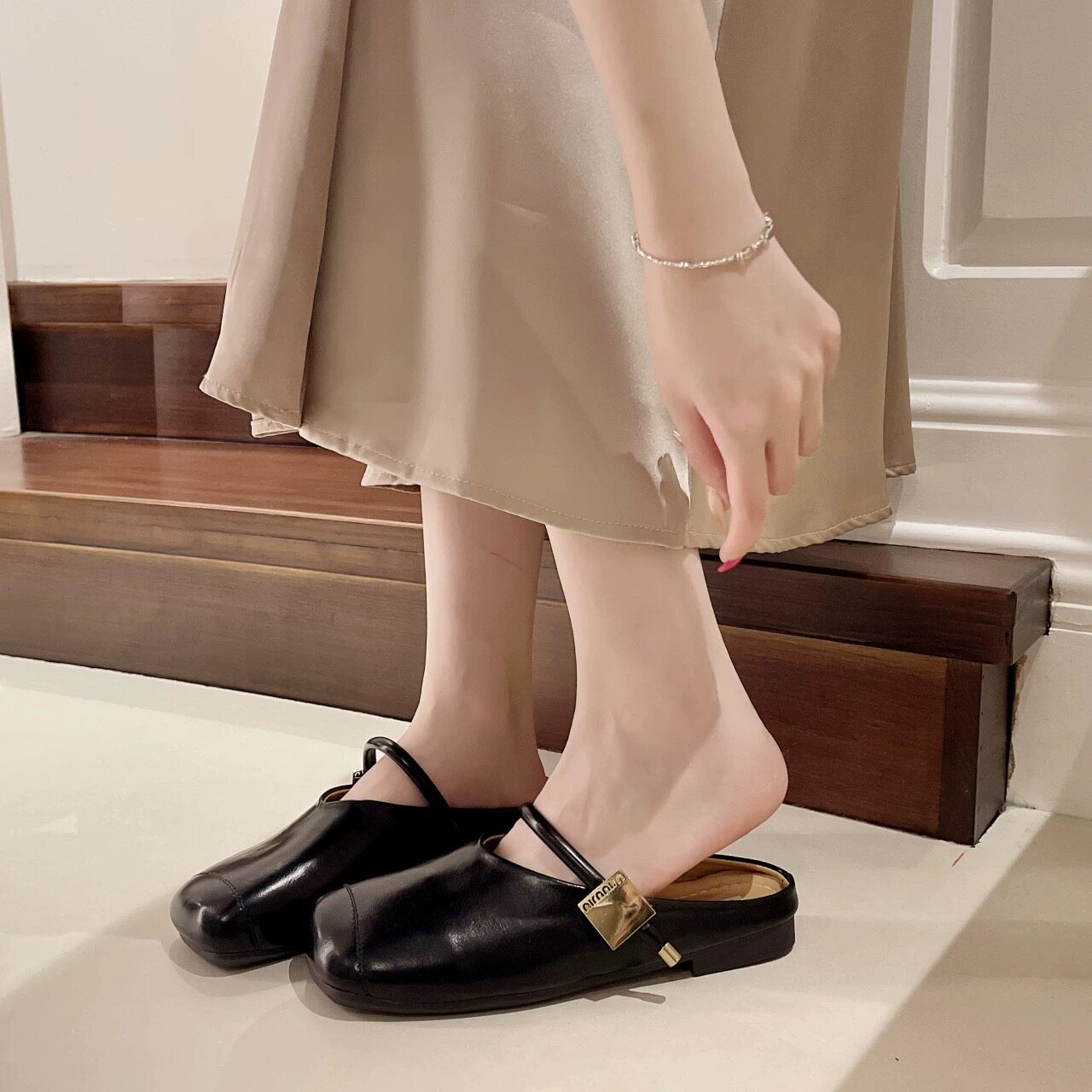百搭时尚 小众仙女风防滑凉鞋 休闲平底欧美风包头半拖 春夏法式 新款