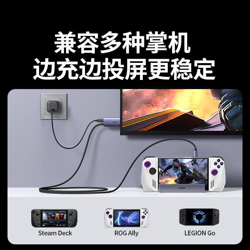 绿联Type DP1.4投屏线8K高清投屏PD充电二合一100W快充适用手机笔记本电脑接显示器电视屏投影仪 C转HDMI