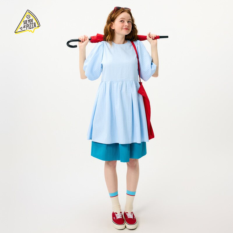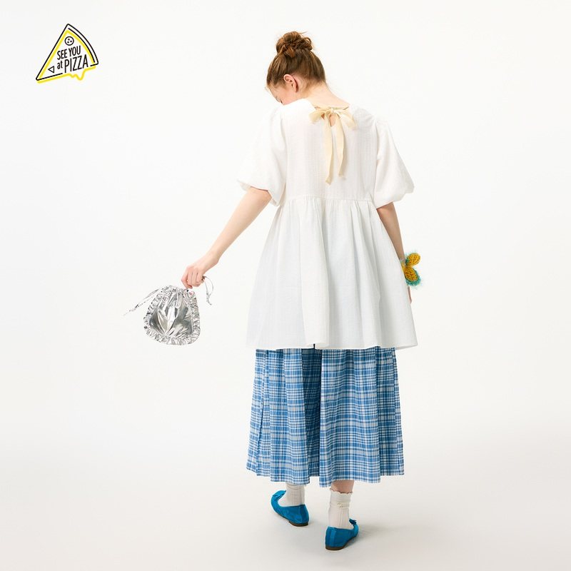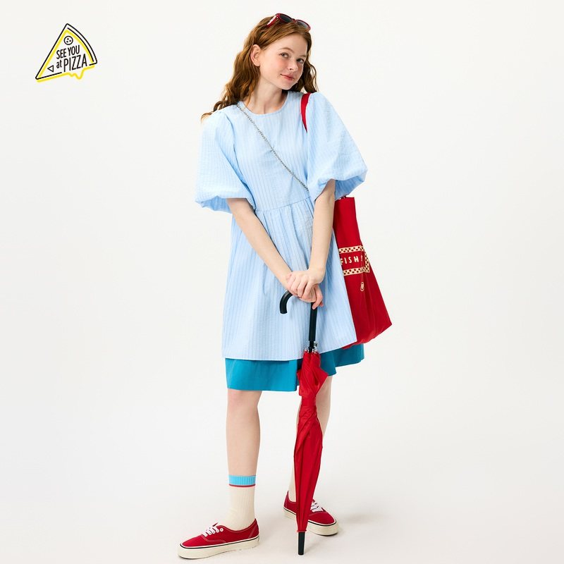 YOU 泡泡袖 新款 A字长裙494554 PIZZA连衣裙女2025年夏季 SEE